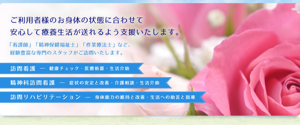 岐阜県大垣市及び近隣地域で、病院への通院が困難な方のために、看護師がご自宅へ定期的に訪問し、看護サービスをご提供いたします。